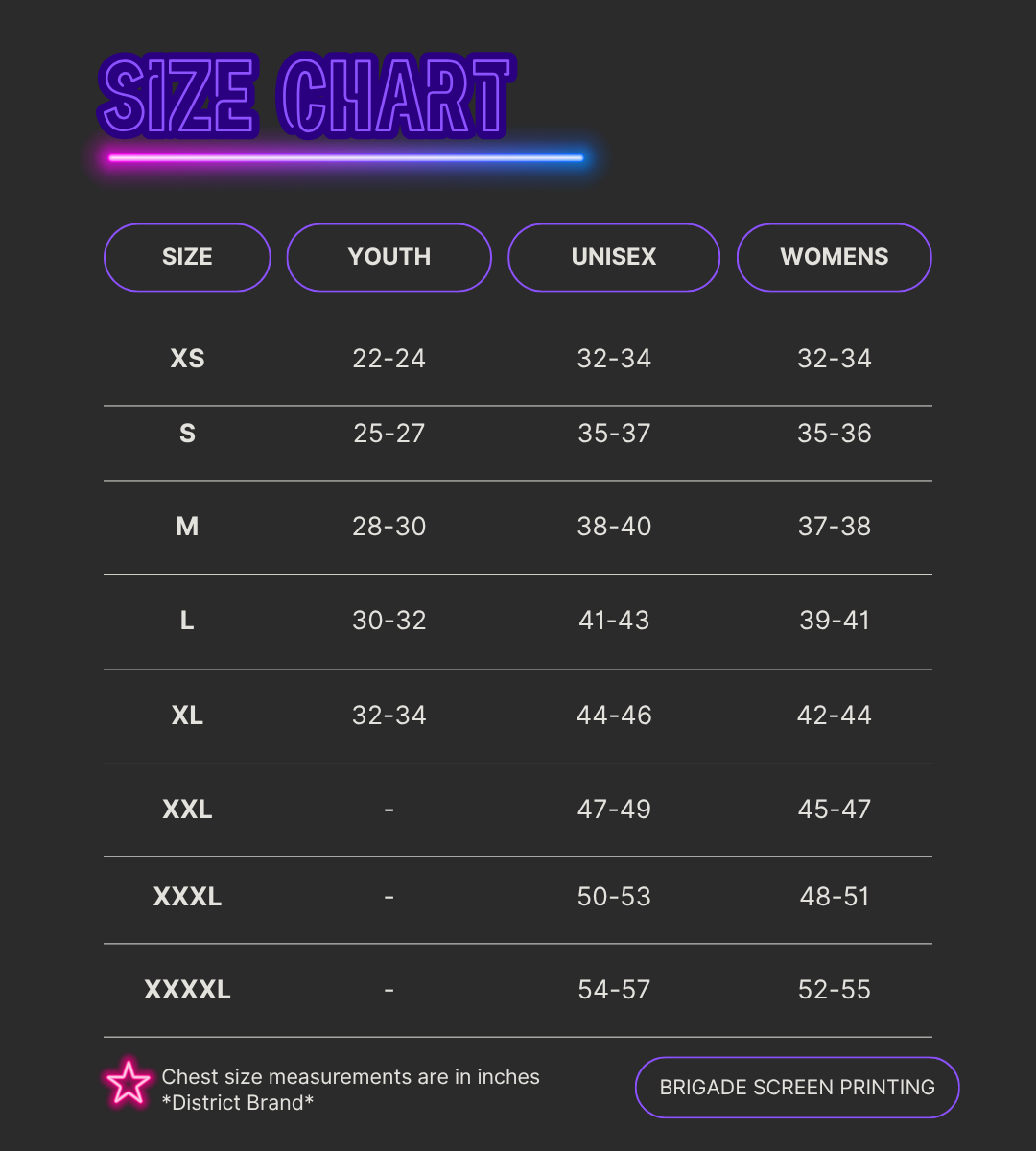 Please note, this size chart is specific to District brand apparel.